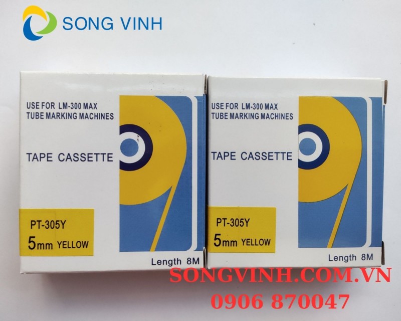 Quy cách : Băng nhãn in màu vàng 5mm ( chiều rộng ) x 8m ( chiều dài )