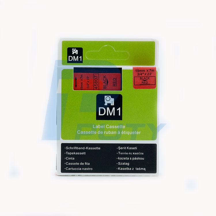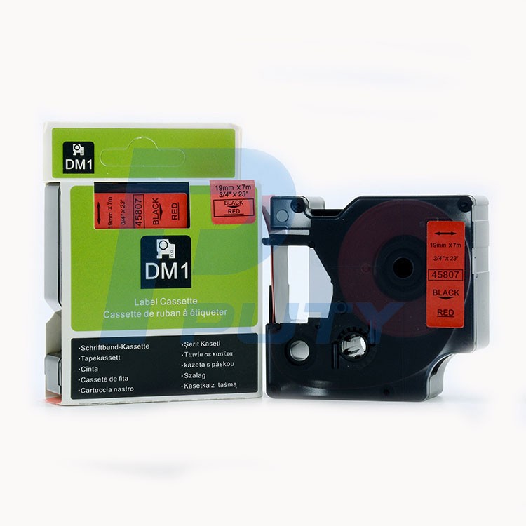 Nhãn in Dymo 19mm DM-45807 ( chữ đen trên nền đỏ )