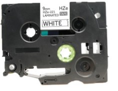 NHÃN IN SIÊU DẺO HZE-FX221 - CHỮ ĐEN TRÊN NỀN TRẮNG, 9MM