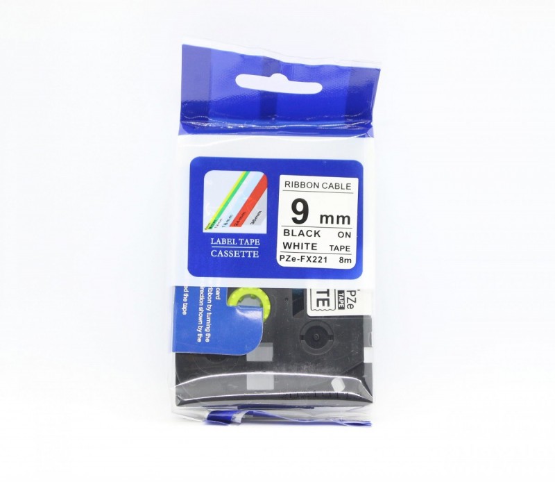 NHÃN IN SIÊU DẺO - PZE-FX221, CHỮ ĐEN TRÊN NỀN TRẮNG, 9MM