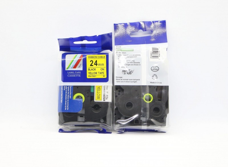NHÃN IN SIÊU DẺO PZE-FX651 - CHỮ ĐEN TRÊN NỀN VÀNG, 24MM