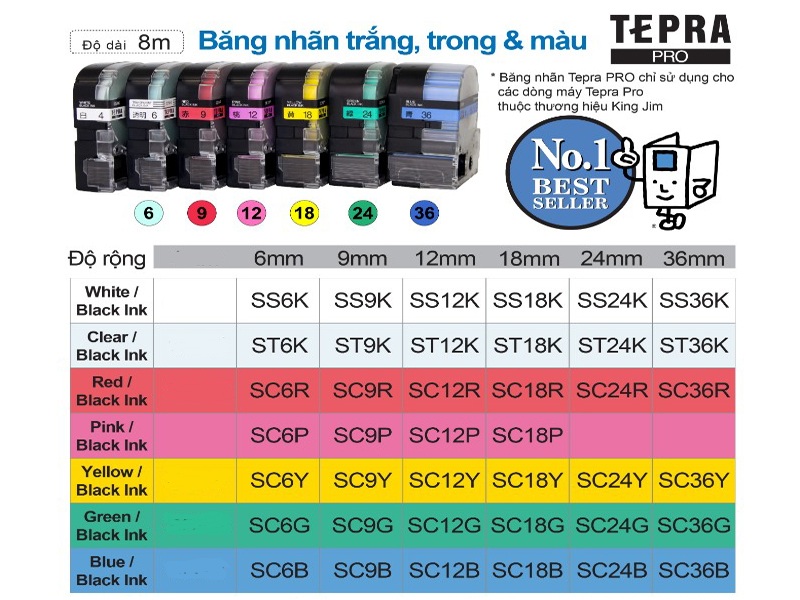 Băng nhãn Tepra PRO chỉ sử dụng cho các dòng máy in nhãn Tepra PRO / King Jim