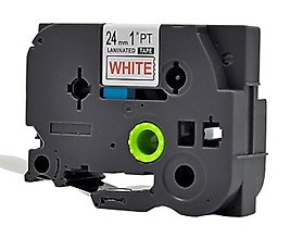 NHÃN IN TZ2-242 - KHỔ IN 18MM - CHỮ ĐỎ TRÊN NỀN TRẮNG / RED ON WHITE
