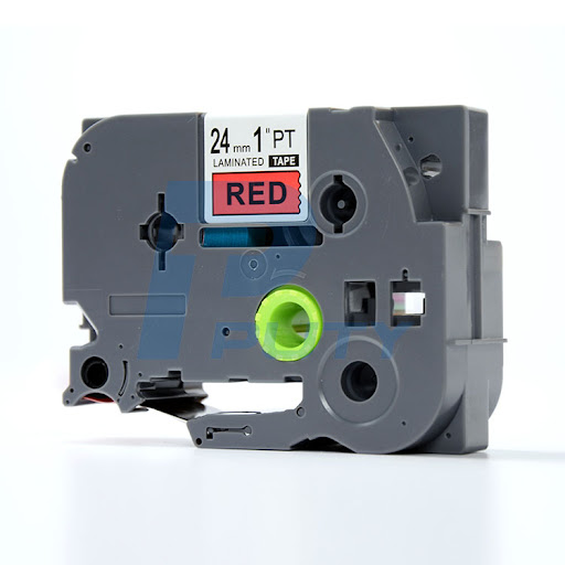 NHÃN IN TZ2-451 - CHỮ ĐEN TRÊN NỀN ĐỎ / BLACK ON RED - KHỔ 24